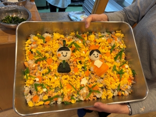 子どもたちのために厨房職員がかわいらしいちらし寿司を作ってくれました♪