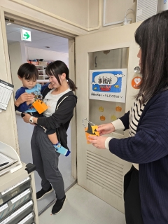 そだち園のお兄ちゃん・お姉ちゃんがお出迎え。ペープサートをもらったよ