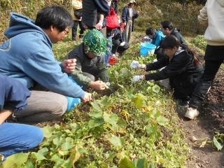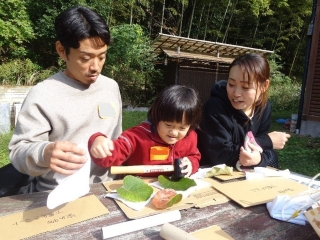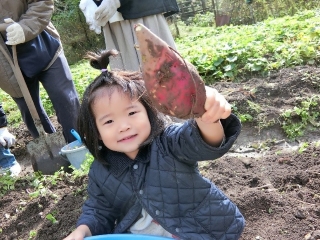11月上旬に親子遠足で丹波へ行きました。秋の遠足といえばお芋掘り!サツマイモは例年より少なめでしたが、無事に収穫することができました。午後からは、山菜やサツマイモのツルや葉っぱを天ぷらに♪染物体験では、丹波に落ちている葉っぱを使って「たたき染め」に挑戦しました。お天気にも恵まれ、親子でのんびりたくさんの秋を感じられた遠足となりました。