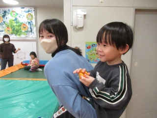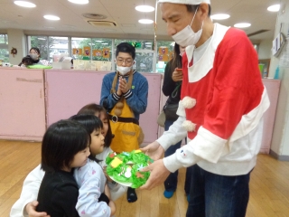 12月25日にクリスマス会を行ないました。昨年同様、同じ法人内施設の「風の子そだち園」の利用者さんがクリスマス会を盛り上げに来てくれました!クリスマスの歌を一緒に歌ったり、パラバルーンをしたり、とても楽しい時間となりました♪今回は、感謝を込めてサンタさんに扮した利用者さんに、クラスごとに作ったリースをプレゼントしました☆今年もサンタさんが子どもたちみんなにクリスマスプレゼントを届けてくれました。