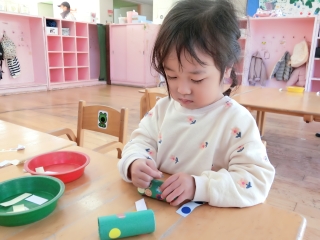 がんばってリースを製作中