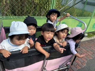 「バス来たよ!」と大好きな乗り物に目を輝かせる子どもたち(0~1歳児)