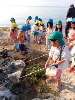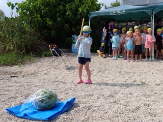 比良風の家にて、びわ湖キャンプを行ないました。天候にも恵まれ、湖水浴やスイカ割りなど、夏ならではの遊びを満喫しました。子どもたちにとっては初めてのお泊まり行事でしたが、「また行きたい!」とみんなが話すほど、思い出に残る楽しいキャンプになりました。 |