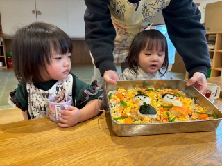 子どもたちのために厨房職員がかわいらしいちらし寿司を作ってくれました♪