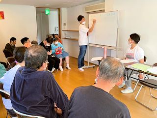 | 毎週、職員が考えたテーマをもとに活動に取り組んでいます。新聞のニュースを読んで感じたことをディスカッションしたり、買い物に行った際のお金の支払い方や計算、旅行に行くにはどのようなことが必要かなど、一緒に考え話し合ったり、みんなで学べる時間になっています。最初は自分の意見に自信が持てなかった利用者さんも、回を重ねるごとに自信がつき、意欲的に意見を発信する利用者さんが増えてきました。 |