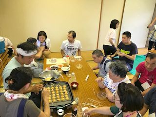 台風が来ていたので湖水浴は中止になりましたが、室内で夏祭りをして楽しみました。大人数の合宿なので料理の準備や片付けなど大変なことはありますが、みんなで力を合わせて楽しみました!