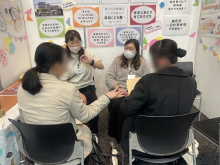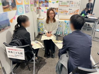 | 2025年12月7日、株式会社ネクストビート主催の「保育士バンク!就職・転職フェアin大阪」が難波御堂筋ホール(大阪市中央区)で開催されました。水仙福祉会からは、風の子保育園の職員が参加。面談者11人を相手に説明を行ないました。 |