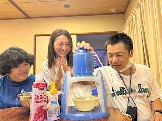 | 法人所有の丹波の施設で2泊3日宿泊しています。丹波ならではの自然!春の桜や初夏の蛍、こぼれ落ちる様な満点の夜空、紅葉、雪景色等、四季の移り変わりを肌で感じることができます。食事には丹波で育てている畑の作物や山菜等を使用したりするなど、自然に囲まれながら豊かな時間を過ごしています。 |