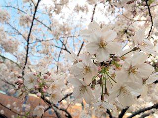 | 今年は天候に恵まれ、みんなそれぞれの楽しみ方で春を満喫していました。ワークセンター豊新の大きな桜の木も満開になり、風が吹くと花吹雪が舞っていました。昼食をお弁当箱に詰めて近くの公園で食べたり、散歩したり、思い思いの時間を過ごしました。そして週末もグループホームのスタッフさんがお花見弁当をこしらえてくれたので、みんなで外で食べました。 |